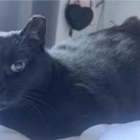 Breed : american bobtail, japanese bobtailSex : femaleSpayed : yesAge : 5-10 yearsWeight : 11 to 15 lbs.Size : mediumColor : medium black+ blackPattern : SolidCollar : noEye Color : light greenEar Size : mediumEar Shape : tips roundedNose Color : blackTail Length : shortTail Shape : bobtailCoat : long hairOther : Left ear is notched as she was a TNR before we adopted her.